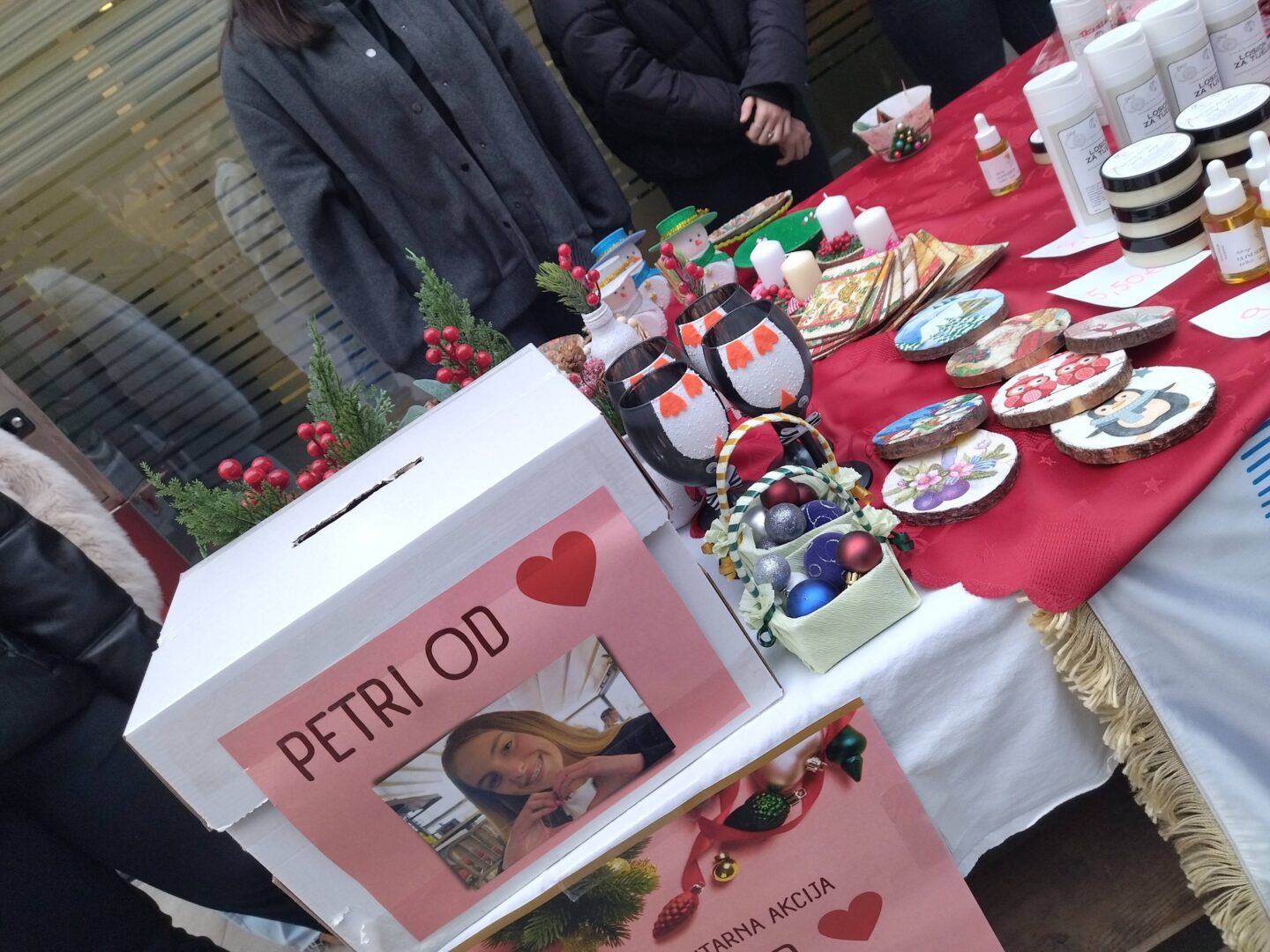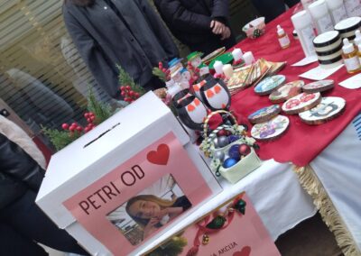 Istovremeno smo održali humanitarnu akciju Petri od srca kojom smo, u zamjenu za božićne rukotvorine gđe Drine Dorotić, prikupljali donacije za daljnje liječenje i oporavak naše učenice Petre Adžić.